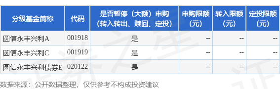 证券之星消息,8月20日圆信永丰基金管理有限公司发布《圆信永丰兴利债券型证券投资基金基金暂停(大额)申购(转换转入、赎回、转换转出、定期定额投资)公告》。公告中提示,为了保证基金的平稳运作,保护基金份额持有人利益,自2025年7月18日起圆信永丰兴利债券型证券投资基金基金暂停(大额)申购(转换转入、赎回、转换转出、定期定额投资),下属分级基金调整明细如下: